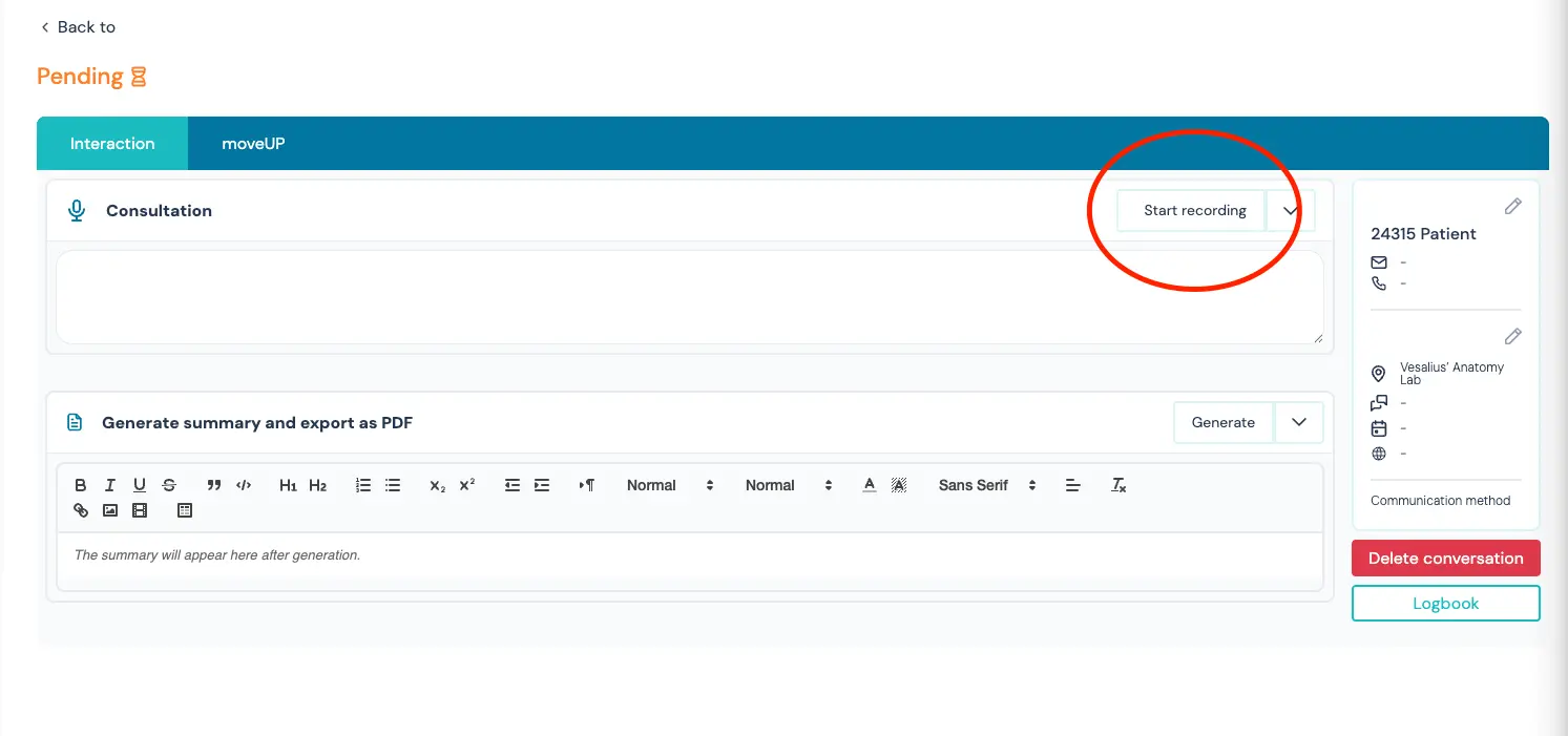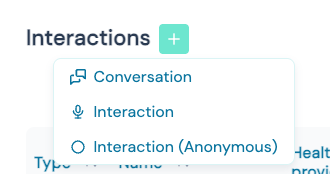 - Select an existing patient (Interaction) or conduct it anonymous (Anonymous interaction)
