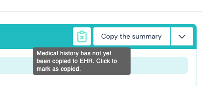 Vanaf dan wordt de status automatisch op copied to EHR gezet telkens wanneer je op de kopieerknop klikt.